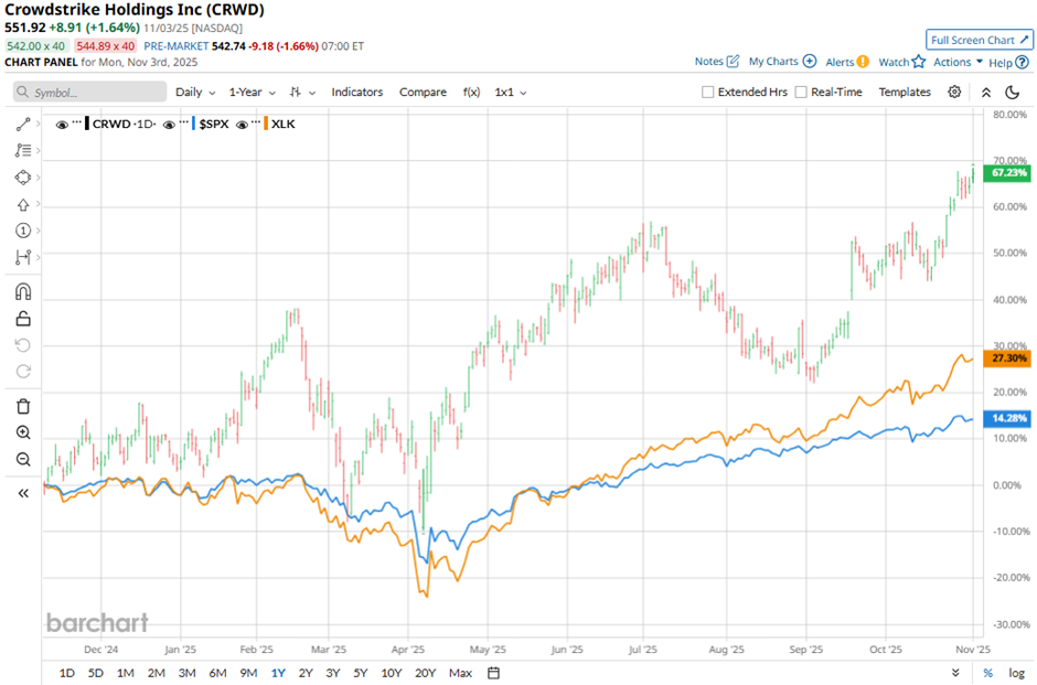 Looking closer, shares of CrowdStrike Holdings have also outperformed the Technology Select Sector SPDR Fund's (XLK) return of 34.8% over the past 52 weeks.